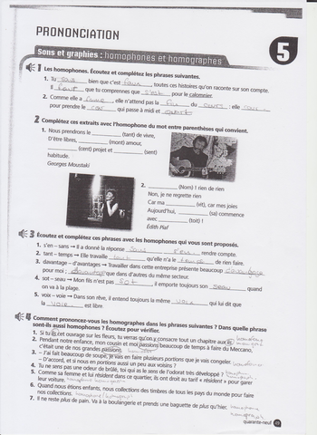 Ejercicios Francés III y IV