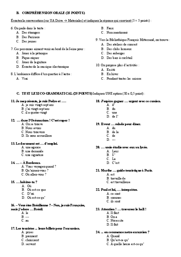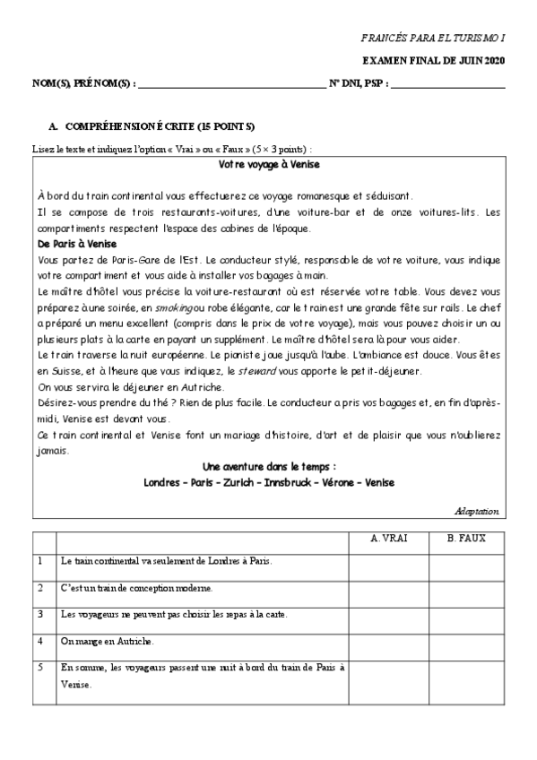 He publicado nuevos examenes de 1º FRANCES PARA EL TURISMO I: Juillet-2020.pdf