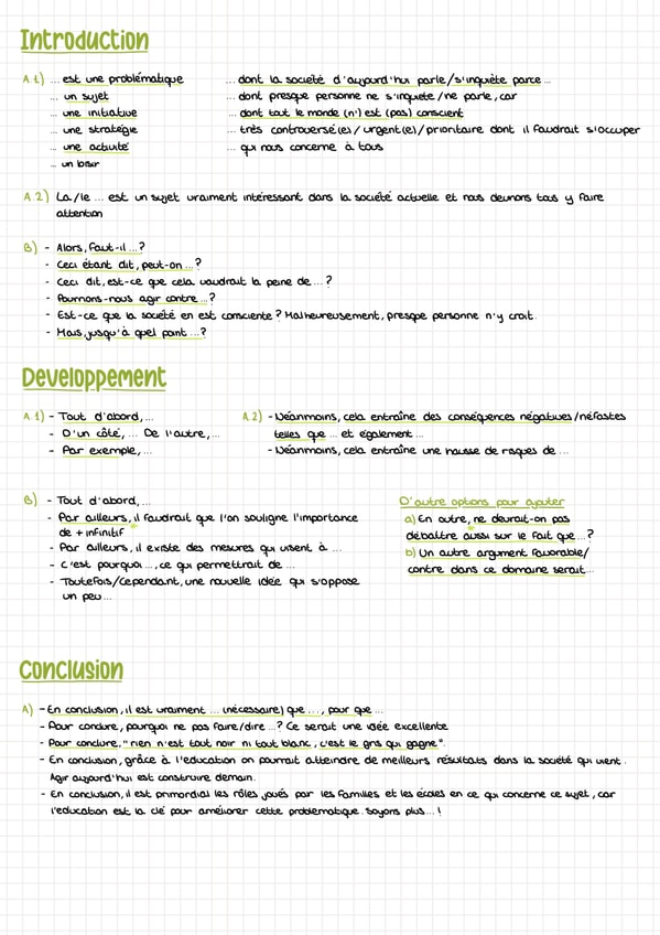 Esquemas para hacer redacciones en francés. Conectores y los diferentes tipos de redacciones para selectividad