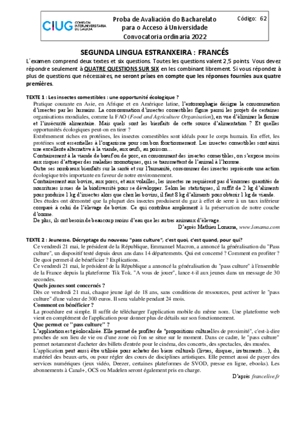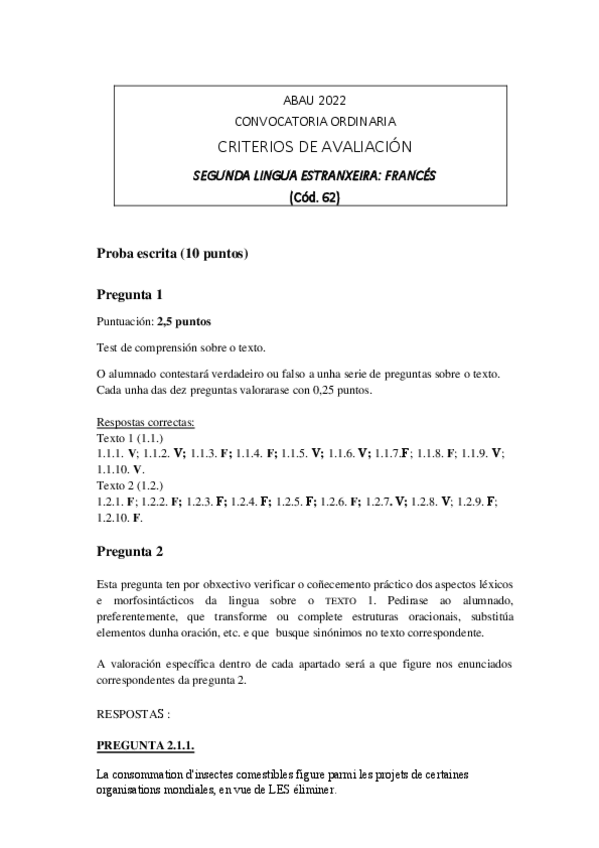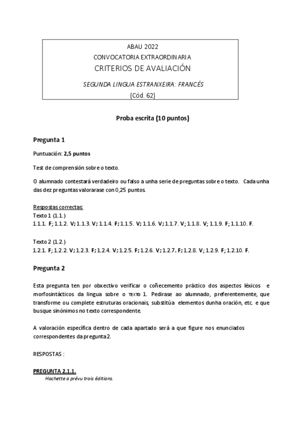 Exámenes y Criterios de Evaluación Francés ABAU Galicia 2022