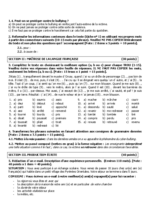 Exámen selectividad francés