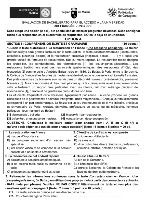 EXÁMENES DE AÑOS ANTERIORES FRANCÉS