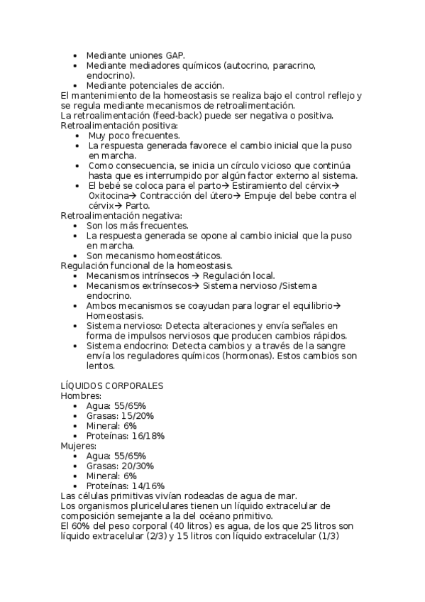 Resumen y apuntes de los temas de los procesos celulares básicos y homeostasis y líquidos corporales