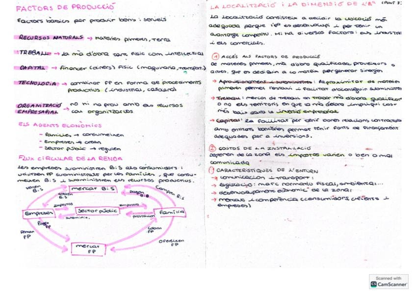 Apuntes en catalán del tema 5 de funciónamiento de la empresa (La producció i els costos de l'empresa)