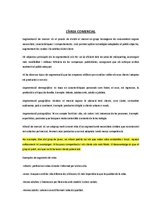 Apuntes en catalán de la unidad 8 de funcionamiento de la empresa (comercializació del producte)