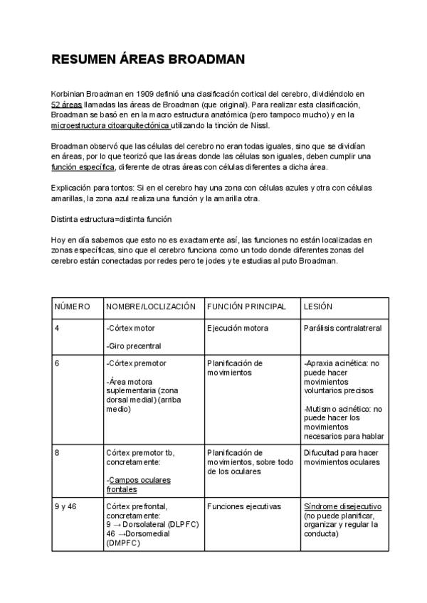 Resumen de las áreas de broadman del lab 1, si os portais bien os hago un resumen del resto del lab