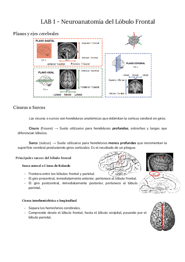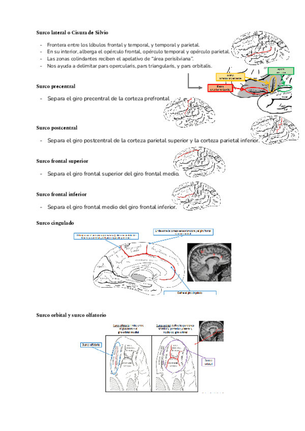 Fotos de las diapositivas desordenadas y sin nombres para practicar los surcos, cisuras y giros que entran en el exámen del primer laboratorio.