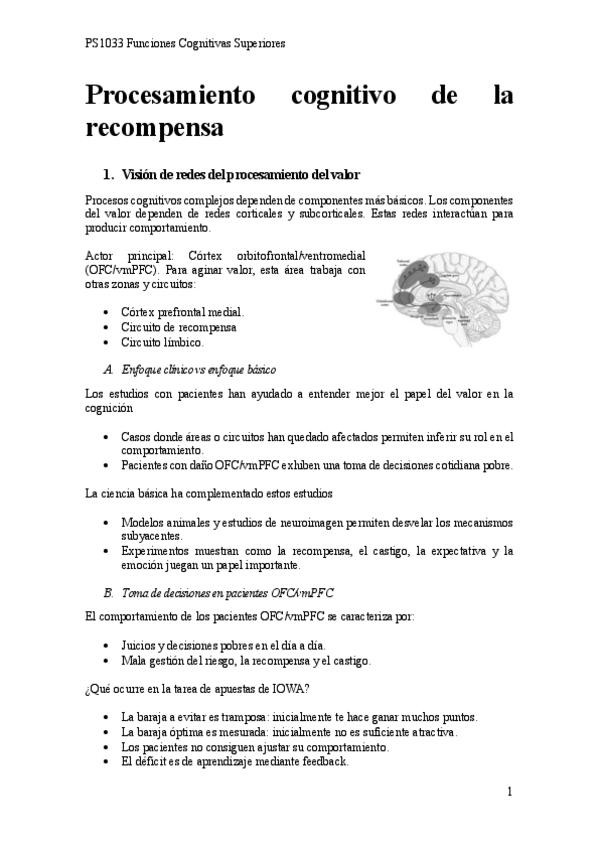 He publicado nuevos apuntes de 4º Funciones Cognitivas Superiores: áreas castigo y recompensa - T5.pdf