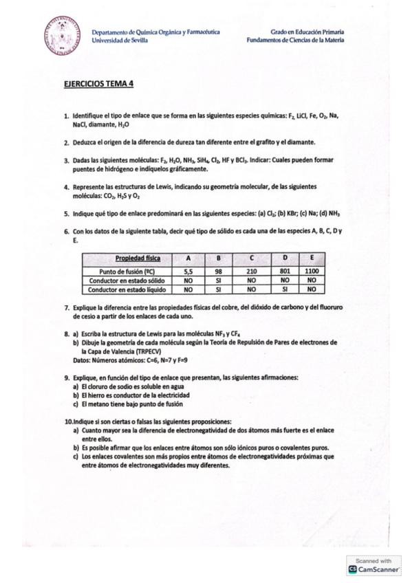 He publicado nuevos ejercicios de 1º Fundamento de Ciencias de la Materia: TEMA 4 QUÍMICA