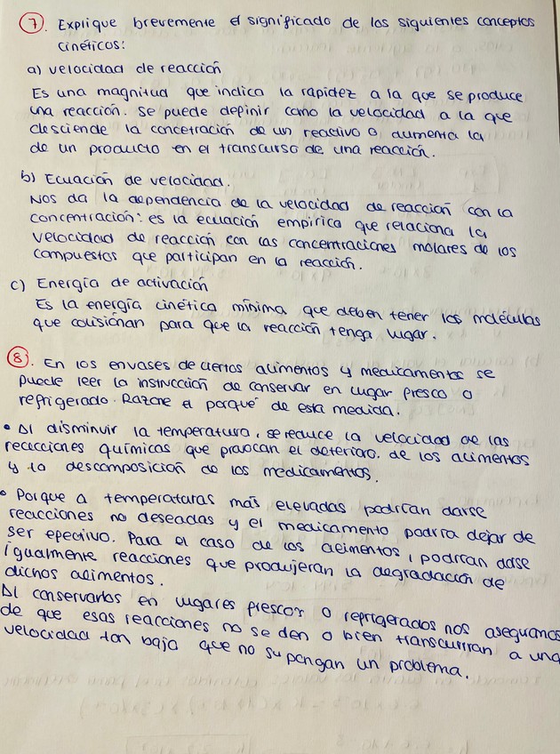 Práctica 8: Cinética química. Informe completo y cuestiones.