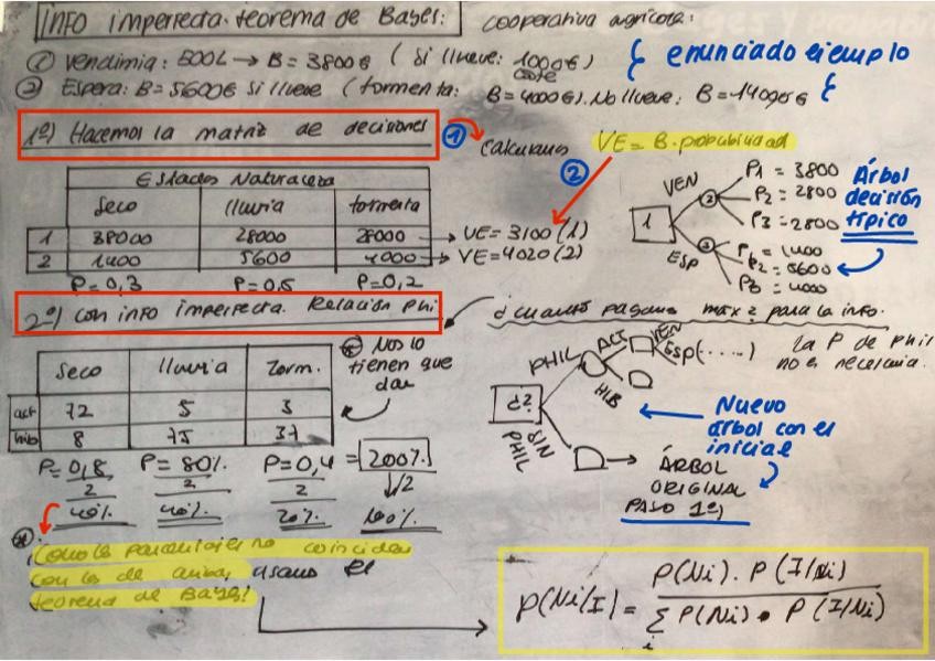 ejemplo explicando paso a paso como aplicar el terorema. no tan confuso como la tabla del cuadernillo del ejemplo. informacion imperfecta.