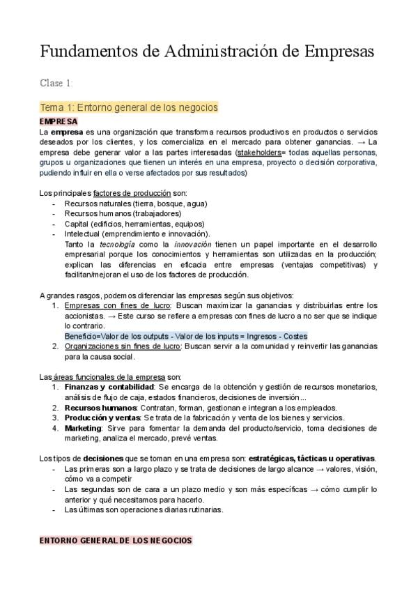 Apuntes - Introduction to business administration - DADE Bilingue - Diego Lázaro