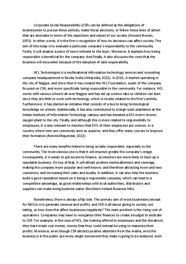He publicado nuevos trabajos de 1º Fundamentos de Administración de Empresas: ESSAY 2 FADE CORPORATE SOCIAL RESPONSIBILITY.pdf