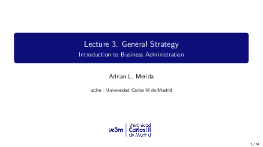 He publicado nuevos apuntes de 1º Fundamentos de Administración de Empresas: Lecture 3 FADE General Strategy.pdf