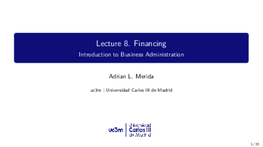 He publicado nuevos apuntes de 1º Fundamentos de Administración de Empresas: Lecture 8 FADE Financing.pdf