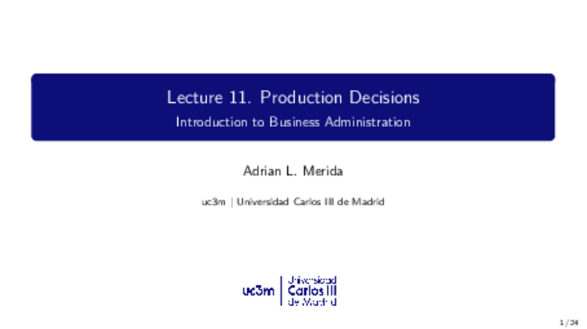 He publicado nuevos apuntes de 1º Fundamentos de Administración de Empresas: Lecture 11 FADE Production Decisions.pdf