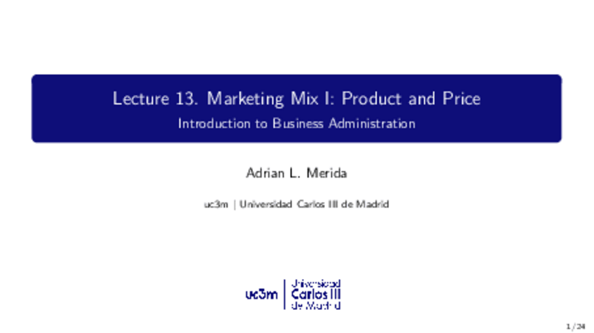 He publicado nuevos apuntes de 1º Fundamentos de Administración de Empresas: Lecture 13 FADE Marketing Mix I.pdf