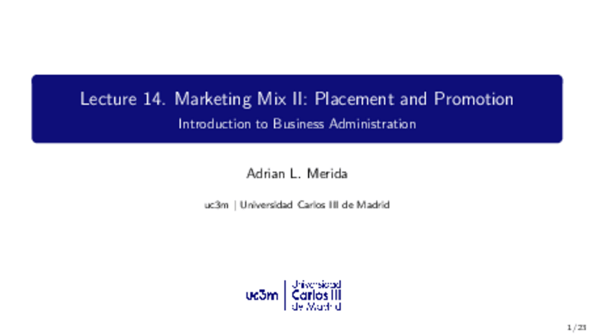 He publicado nuevos apuntes de 1º Fundamentos de Administración de Empresas: Lecture 14 FADE Marketing Mix II.pdf