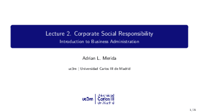 He publicado nuevos apuntes de 1º Fundamentos de Administración de Empresas: Lecture 2 FADE Corporate Social Responsibility.pdf