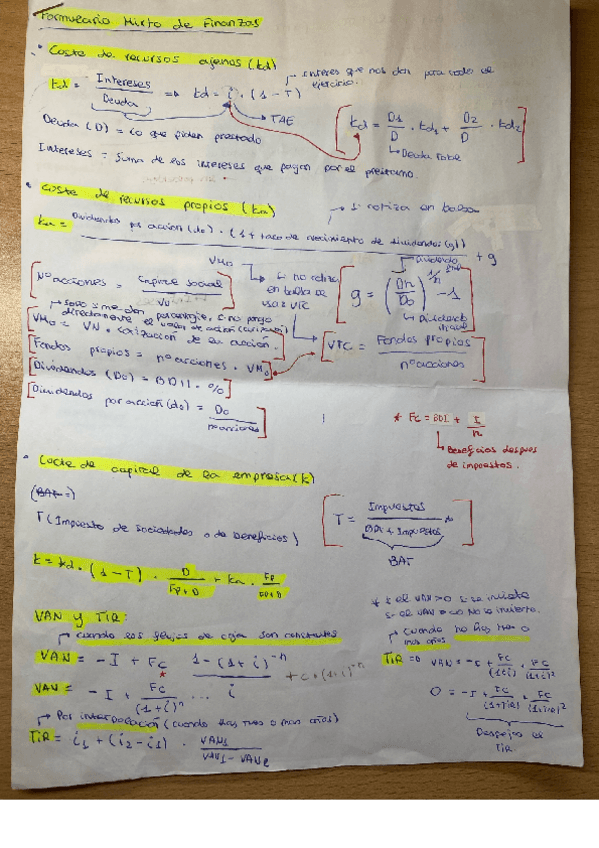 Es un formulario a mano con apuntes clave para saber realizar 2 de 3 ejercicios del examen.(Todos menos el de árbol ya que no requiere de formulas como tal)