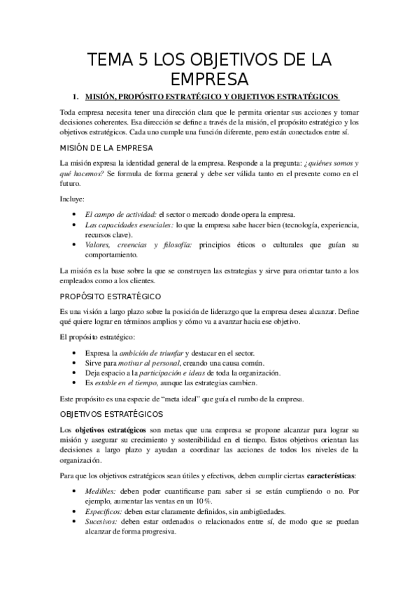 tema 5 objetivos de la empresa