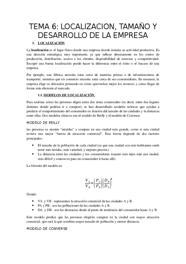 tema 6 localización, tamaño y desarrollo de la empresa