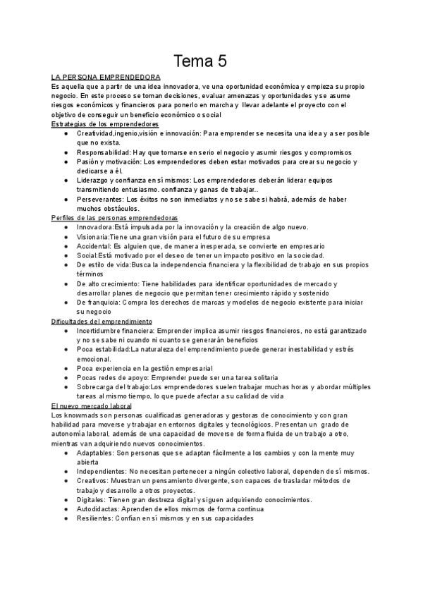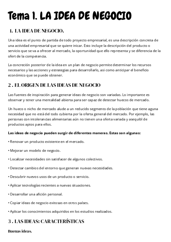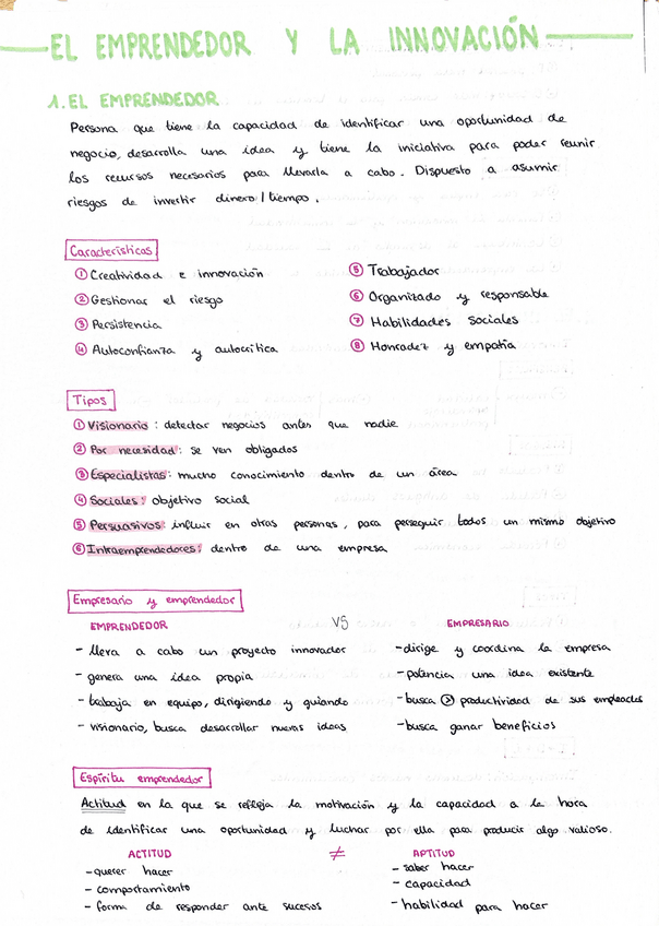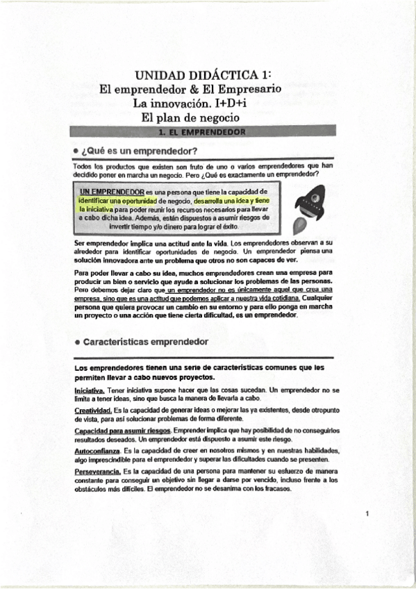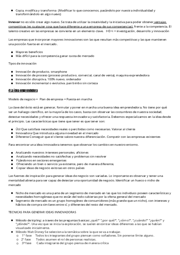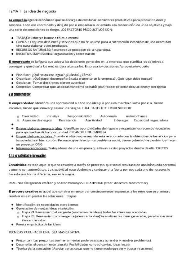 Apuntes sobre el emprendedor y la innovación (tema1) y sobre la idea de negocio (tema2)