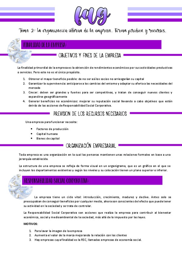Apuntes del tema 1 de fundamentos de administración y gestión de 2BACH. Si te son útiles deja un like y comenta.