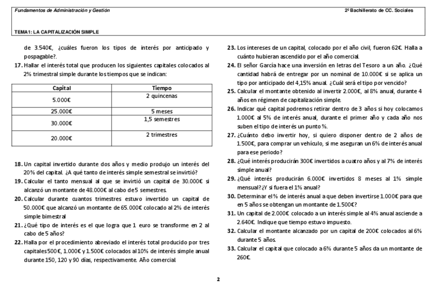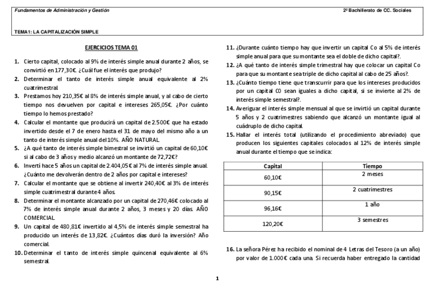 EJERCICIOS TEMA1: LA CAPITALIZACIÓN SIMPLE Fundamentos de Administración y Gestión