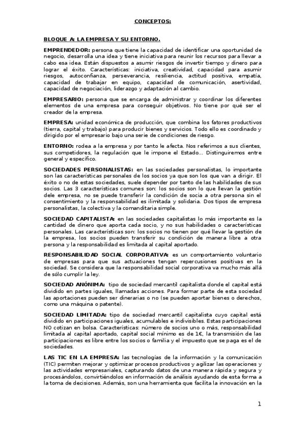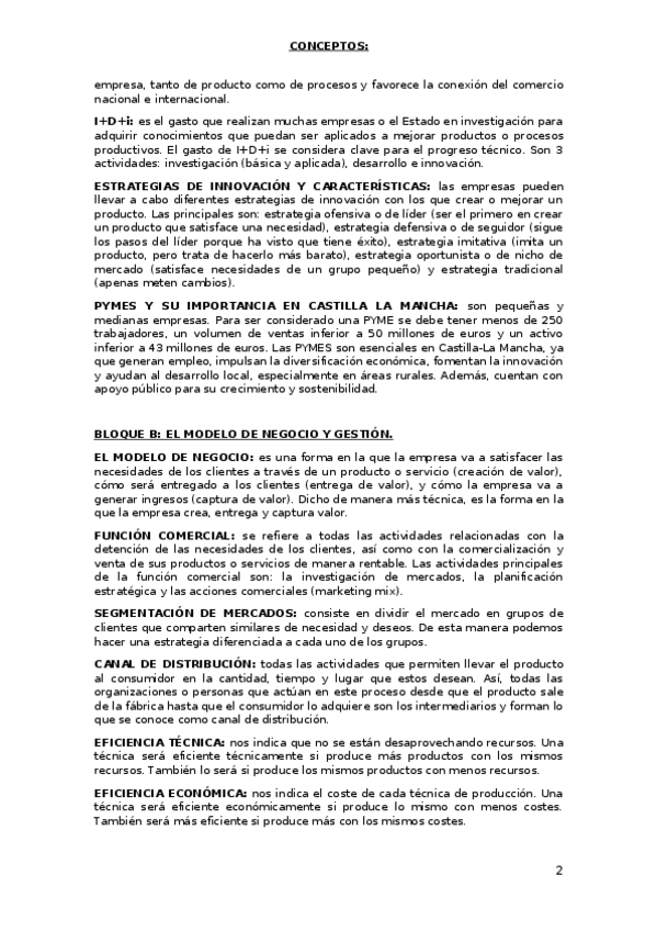Conceptos de la asignatura fundamentos de la administración y gestión de la empresa de segundo de bachillerato. Contiene todos los bloques según la UCLM en el curso 2024/2025.