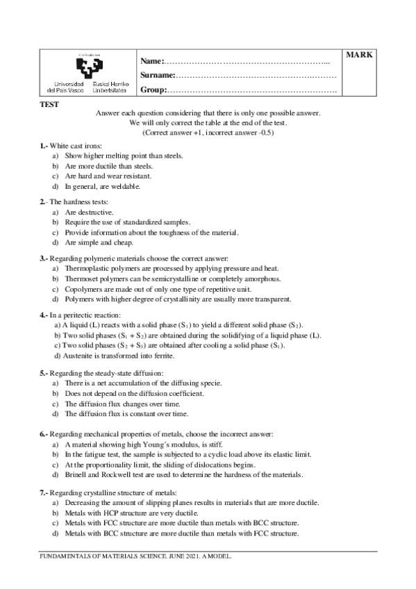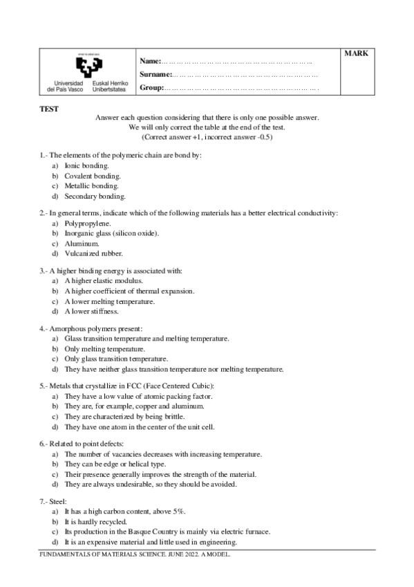 He publicado nuevos examenes de 2º Fundamentos de Ciencia de Materiales: Exams