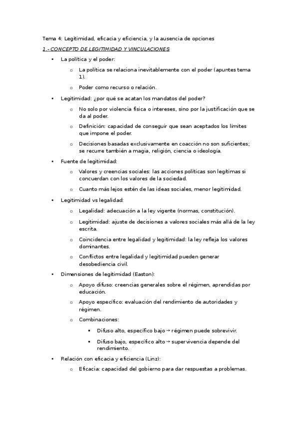 TEMA 4. EL CONCEPTO DE LEGITIMIDAD Legitimidad. Eficacia y eficiencia. La ausencia de opciones