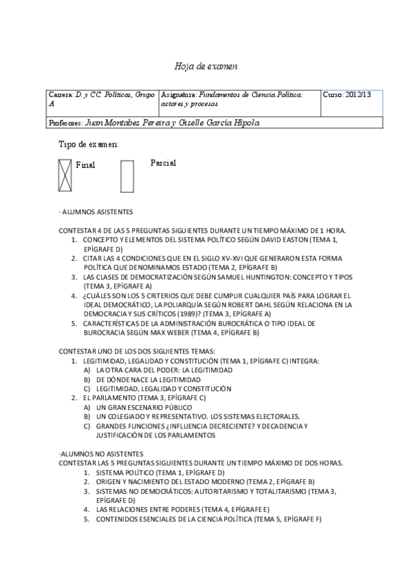 He publicado nuevos examenes de 1º Fundamentos de Ciencia Política: Actores y Procesos: Examen.pdf