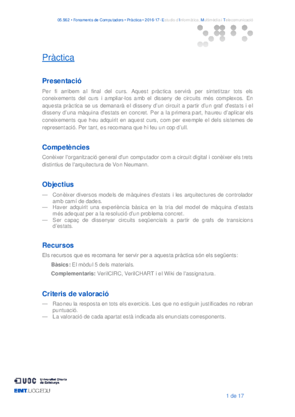 He publicado nuevos apuntes de 1º Fundamentos de Computadores: 05.56220162PracticaEnunciat.pdf