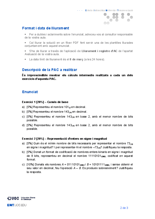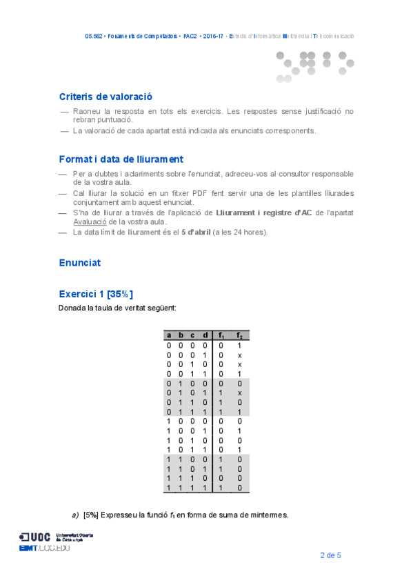 He publicado nuevos apuntes de 1º Fundamentos de Computadores: 05.56220162PAC3Enunciat.pdf