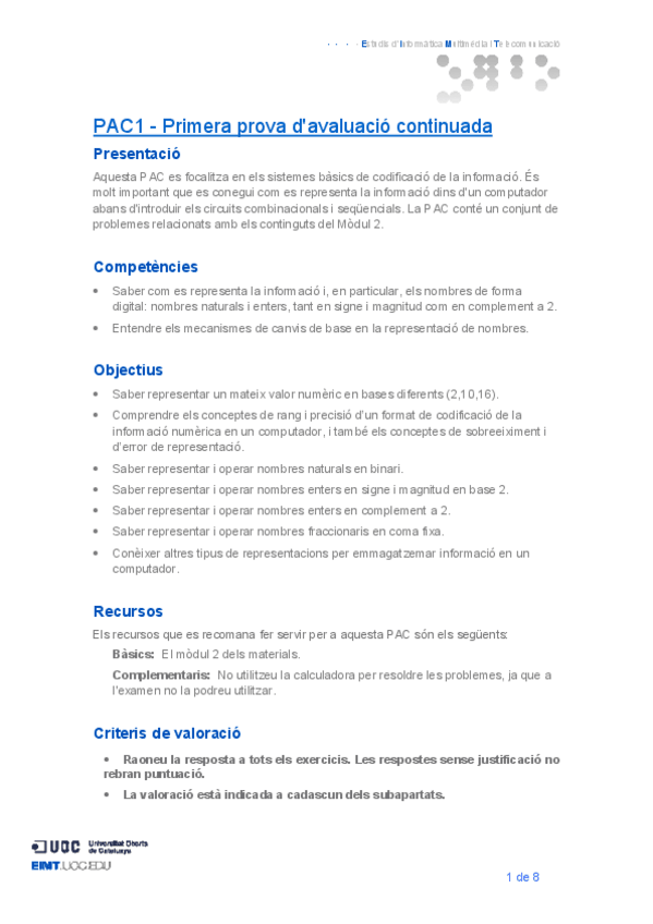 He publicado nuevos apuntes de 1º Fundamentos de Computadores: 05.56220162PAC1Enunciat.pdf