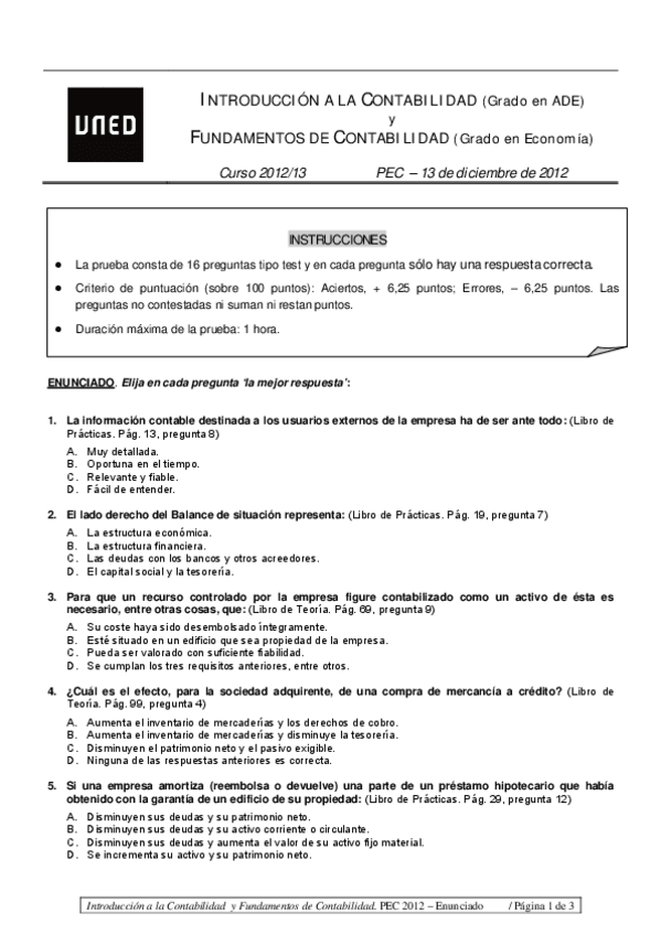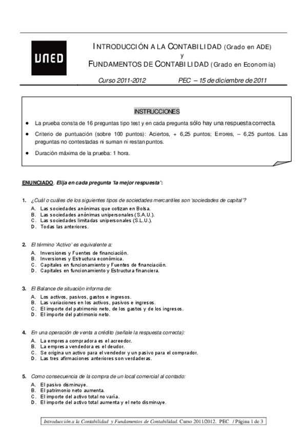 He publicado nuevos examenes de 1º Fundamentos de Contabilidad: PEC 2012 con soluciones (al final)