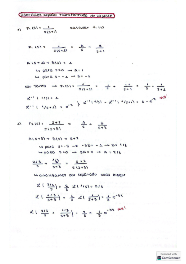 Ejercicios resueltos en clase de las diapositivas de ev. Se trata: LaPlace, antitransformadas, identificación con gráficas, función de transferencia y polos dominantes.