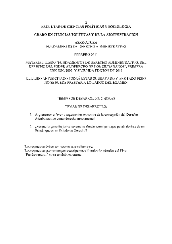 Exámenes fundamentos de Derecho Administrativo