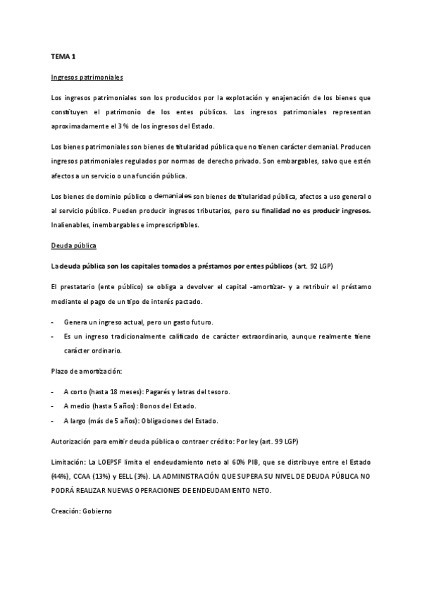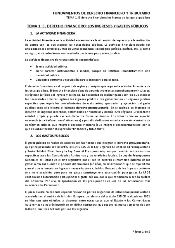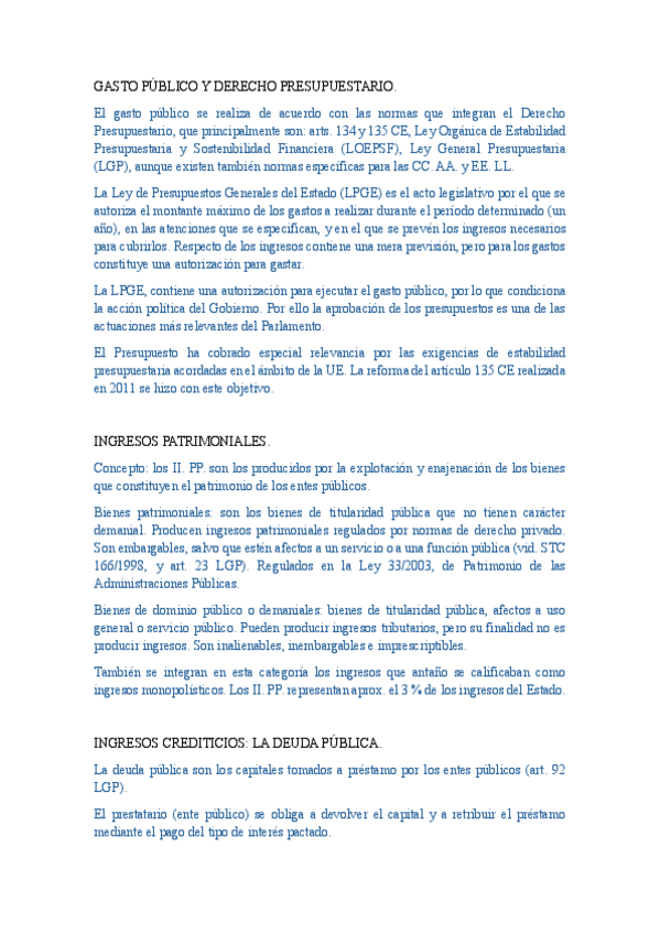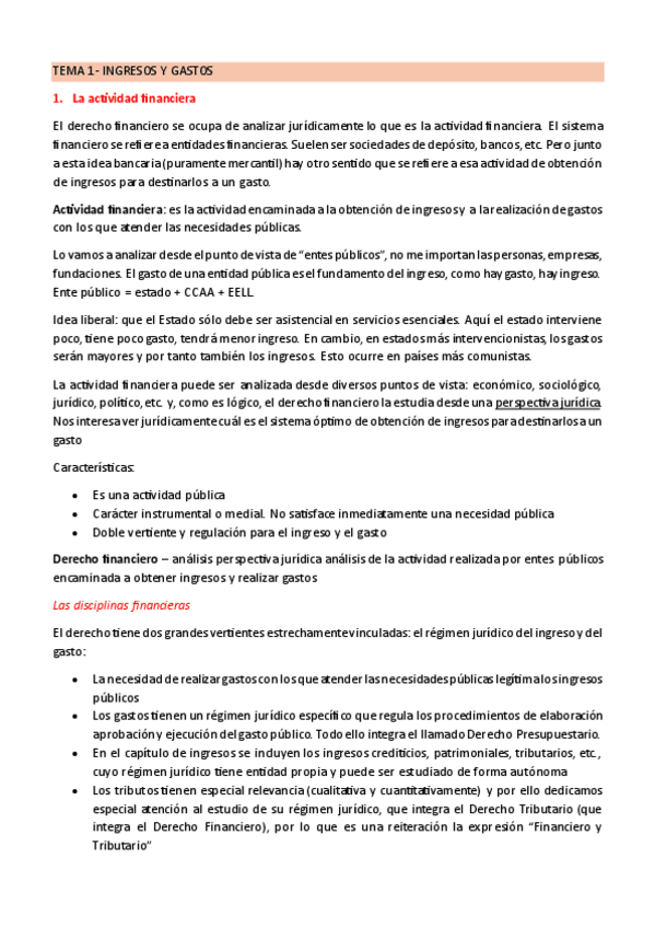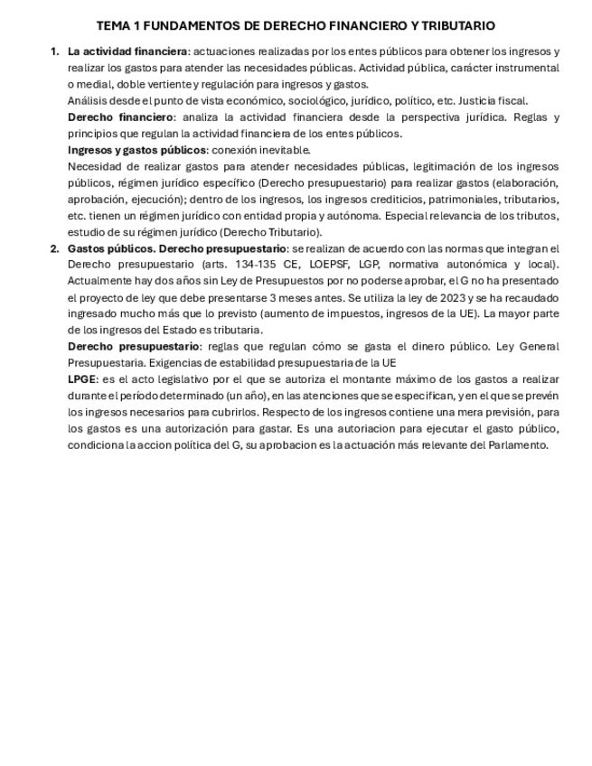 Apuntes resumidos: Fundamentos de Derecho Financiero y Tributario