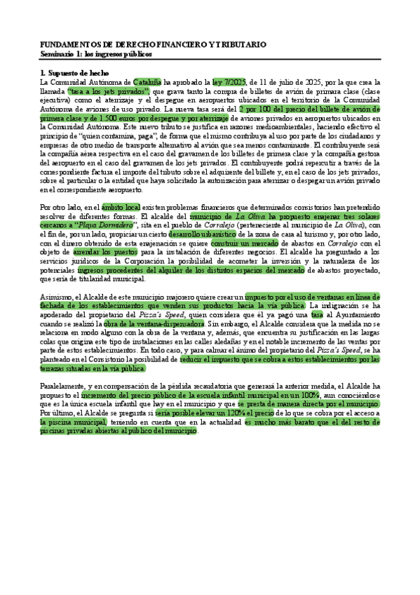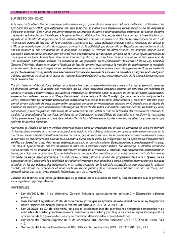 SEMINARIOS CORREGIDOS - Dº TRIBUTARIO Y FINANCIERO