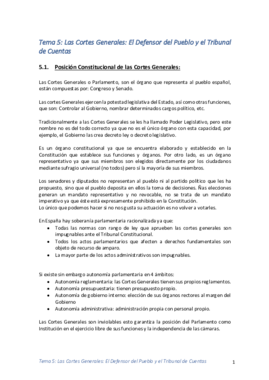 Apuntes - TEMA 5. LAS CORTES GENERALES. EL DEFENSOR DEL PUEBLO Y EL TRIBUNAL DE CUENTAS.pdf