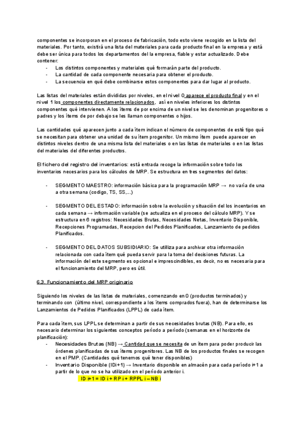 He publicado nuevos apuntes de 3º Fundamentos de Dirección de Operaciones: TEMA 6_ LA PLANIFICACIÓN DEL MATERIALES (MRP) (operaciones).pdf