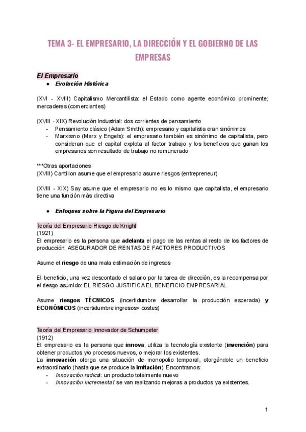 APUNTES COMPLETOS TEMA 3 EL EMPRESARIO, LA DIRECCIÓN Y EL GOBIERNO DE LAS EMPRESAS