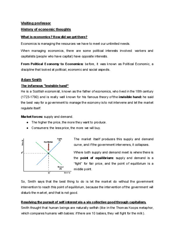 Notes: - Visiting Professor Essentials of Economics (LU1) International Relations, 1rst course, 1rst Semester