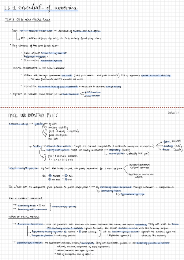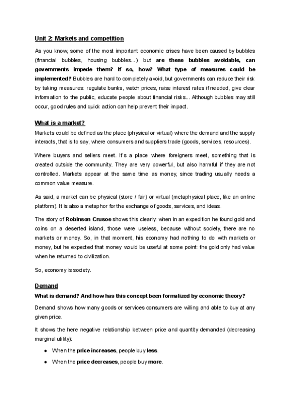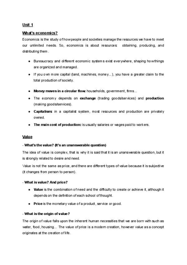 Notes: - Unit 1: What’s economics? - Unit 2: Markets and competition - Unit 3: Market failures and state intervention - Unit 4: Public sector and public budget International Relations, 1rst course, 1rst Semester