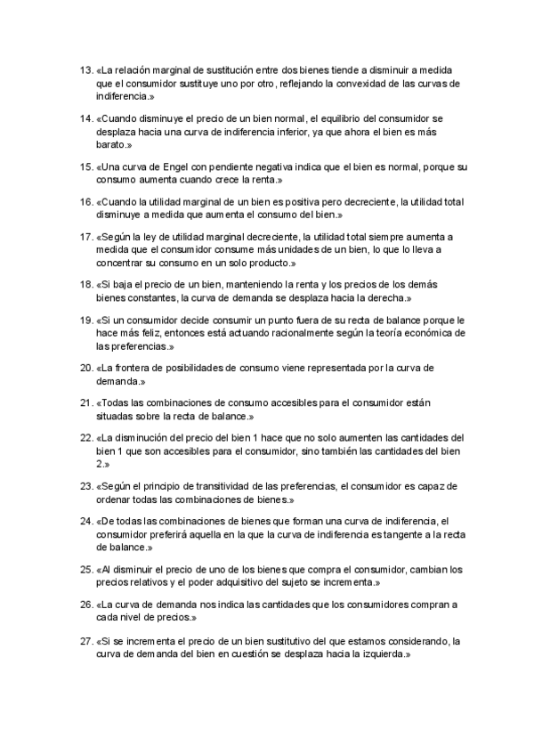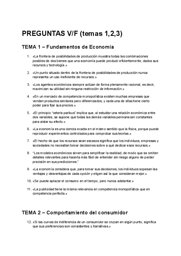 Ejercicios del parcial de Fundamentos de la Economía de VERDADERO o FALSO. Las respuestas y justificaciones están al final del documento.