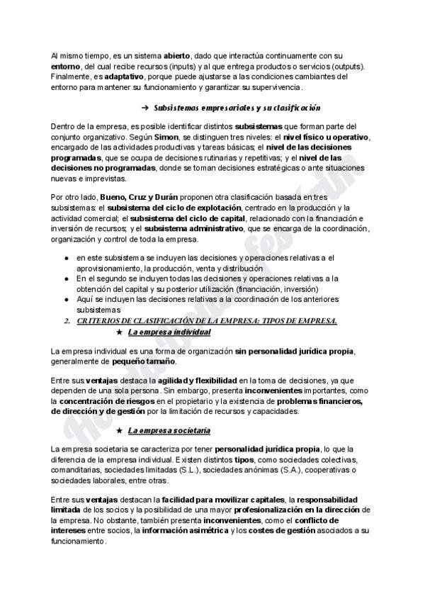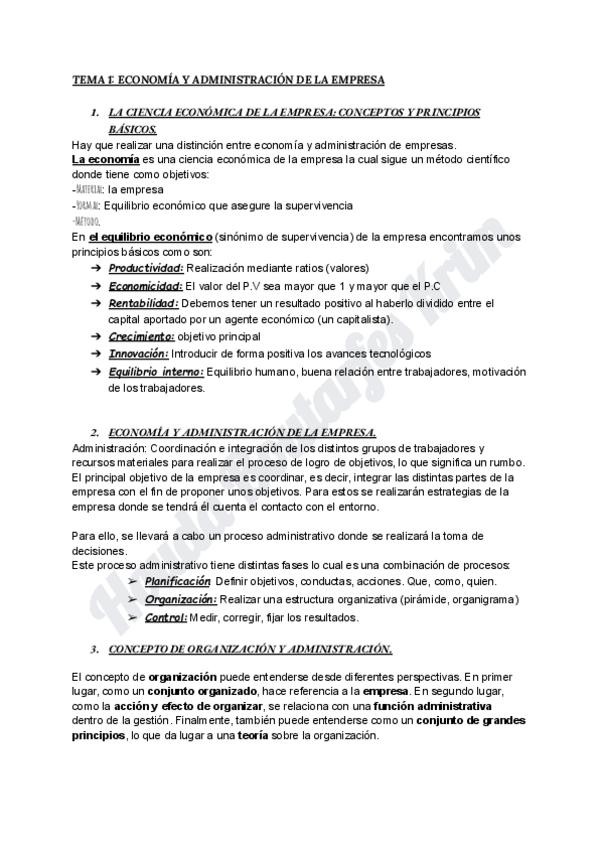 Apuntes completos Fundamentos de Economía de la empresa del 1er curso de Marketing en la UA