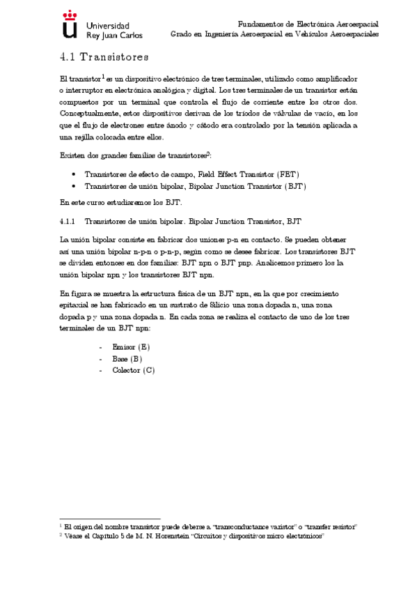 He publicado nuevos apuntes de 3º Fundamentos de Electrónica Aeroespacial: T2 Diodos Transistores.pdf