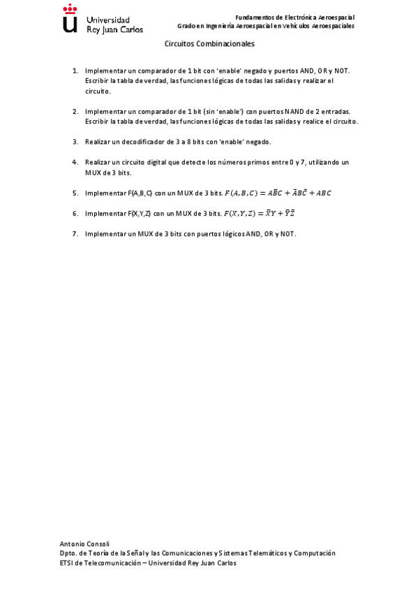 He publicado nuevos test de 3º Fundamentos de Electrónica Aeroespacial: 25-26-Combinacionales-Resuelto.pdf